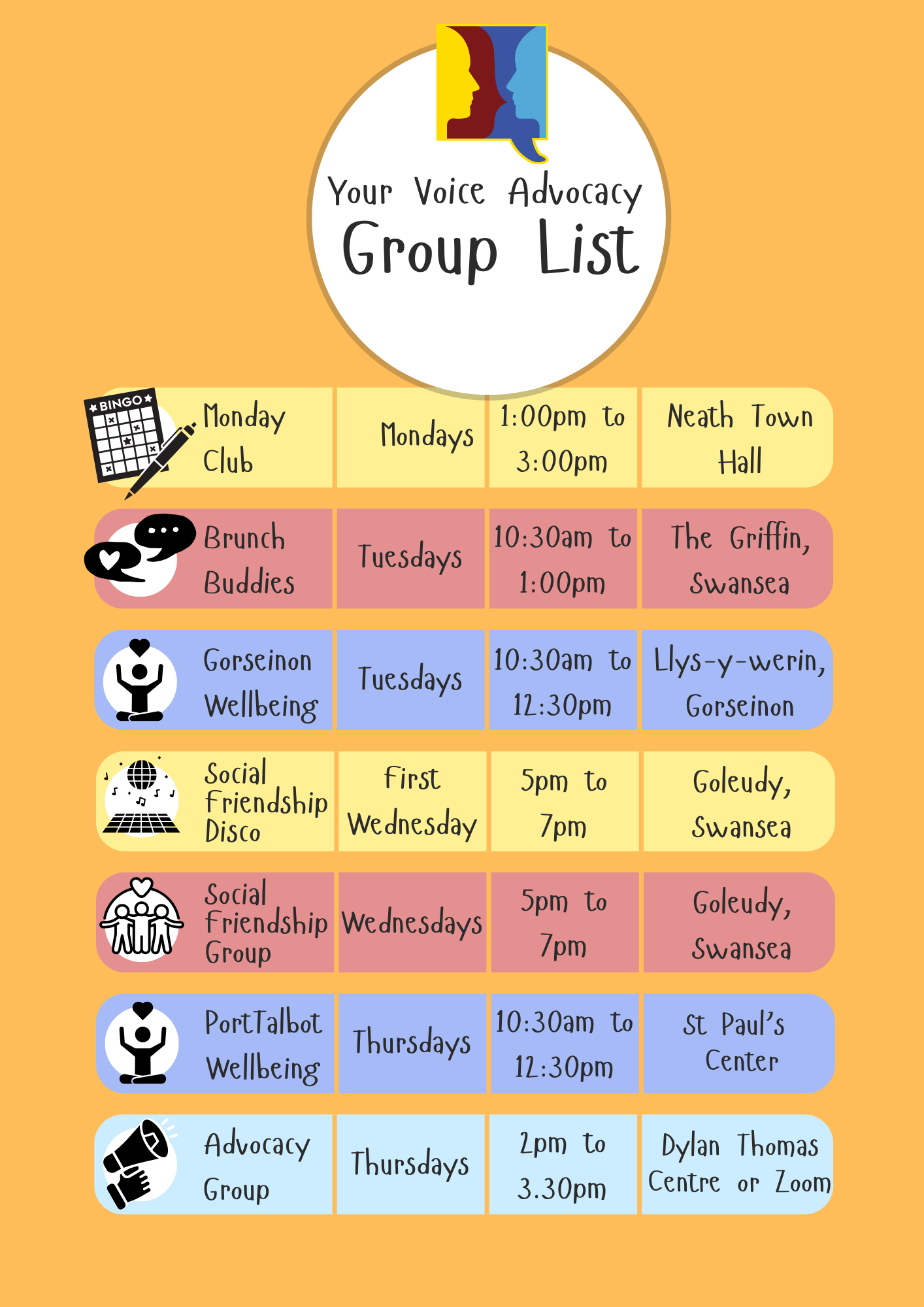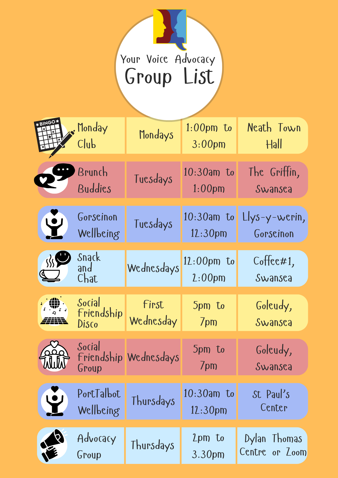 - Through West Glamorgan People First, YVA independently facilitates ‘Peer Advocacy’ for people with learning disabilities in Neath Port Talbot and Swansea.
